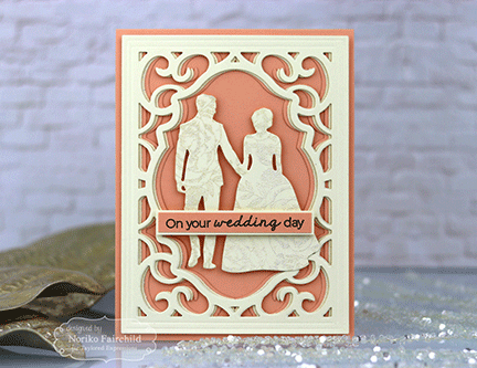 Celebrate the wedding of that special couple with the To Have & To Hold dies. The set includes a silhouette of a couple walking hand-in-hand down the aisle, as well as a separate overlay die of the bride's dress, which can be used to add an extra layer of dimension and beauty. Set of two individual dies. Die of couple measures approcimately 2.75 x 3".