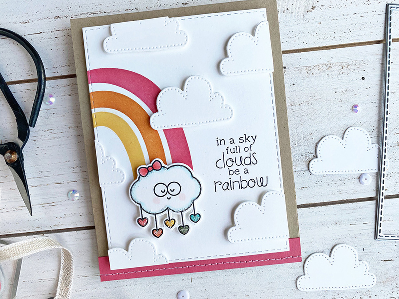 Part of our exclusive Somewhere Over the Rainbow Kit, the Rainbow Cloud Duo dies will add instant dimension to any of your rainbow-themed cards. The fluffy cloud set includes a solid cloud and one with a dotted border. Set of 2 dies (each measures 1 3/4" x 1").