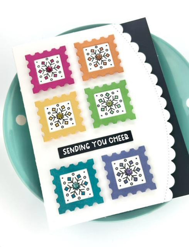 Designed to coordinate with the monthly Pretty Postage stamps that come free with each order, this die set can also be used independently for creating projects with a variety of depth and color. Enjoy using this set to send personalized greetings with a pretty postage stamp feel! Set includes six dies. Smaller dies measure 1" x 1", larger dies measure 1 1/4" x 1 1/4".