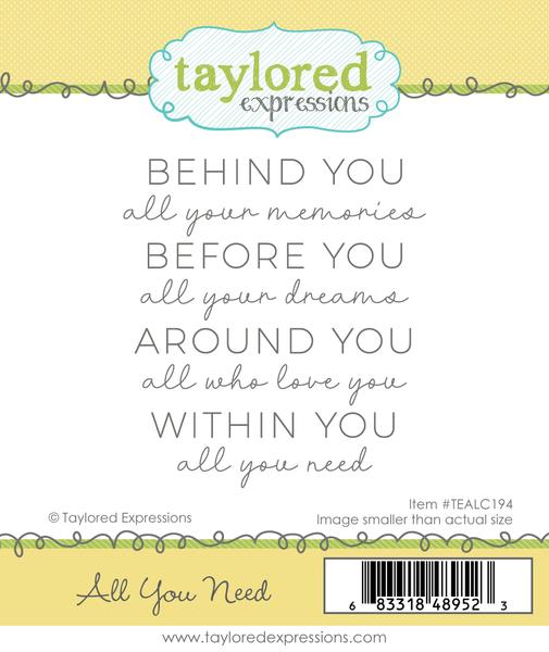 Support those you love with the encouraging words of the All You Need stamp. This beautiful poem in a stacked layout mixes block and cursive fonts for a simple way to send a note of love and encouragement to your loved one embarking on a new chapter in life. Single image pre-trimmed red rubber stamp mounted on cling foam. Measures 2 3/4" x 3".