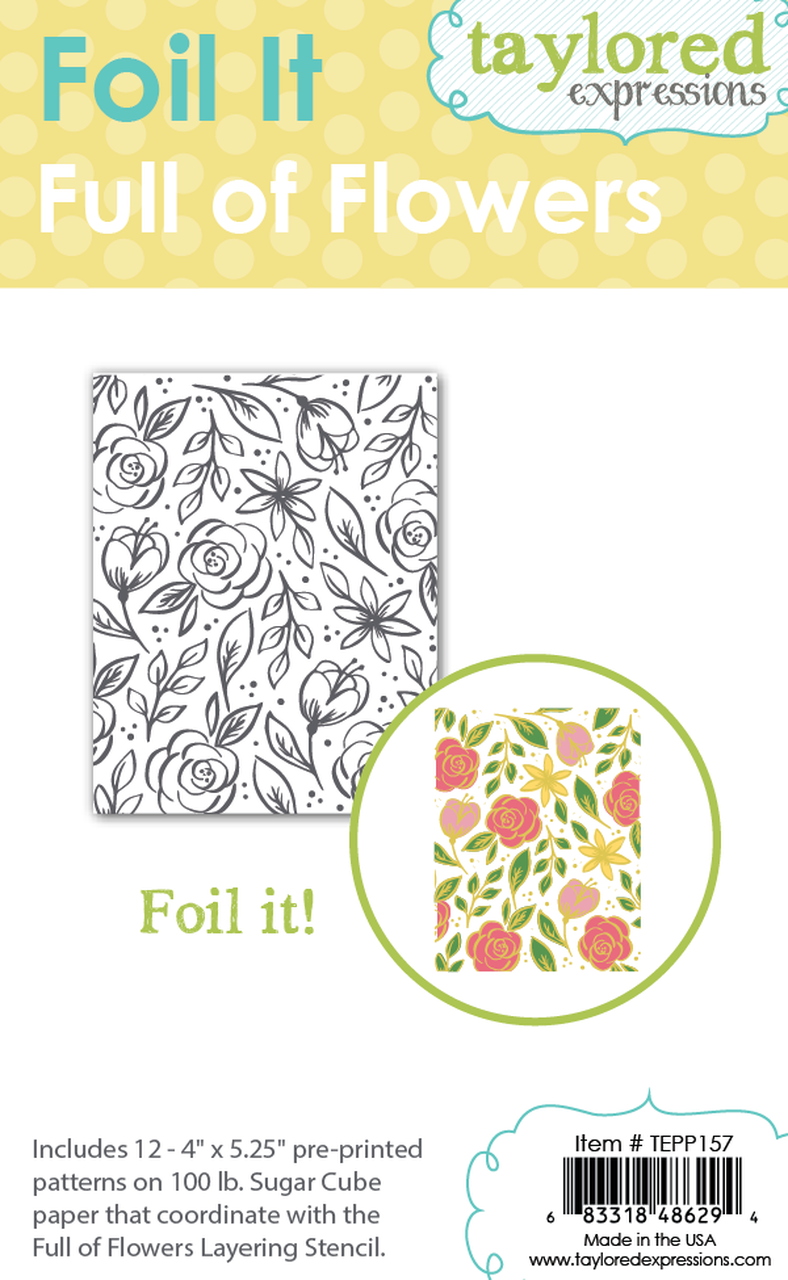 Add shimmery accents to the cards you create with our Full of Flowers Cling & Clear Combo (sold separately) with our Foil It - Full of Flowers panels. Simply use the clear stamps from the Combo to add color to the flowers and leaves, then top with the foil of your choice and run it through your foiling machine. Voila - a beautiful pattern with shiny stems, leaves and accents! Set of 12 pre-printed panels on TE Premium Cardstock (each measures 4" x 5 1/4").