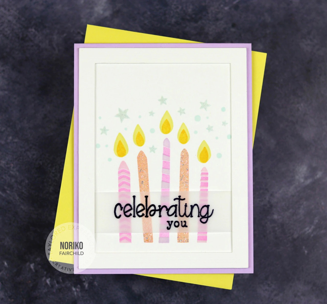 Create fun, birthday-themed cards and crafts with our Candles Layering Stencil. The set of four individual stencils layers to create a line of solid and patterned birthday candles with flickering flames. Fun to use with TE Blender Brushes (sold separately), each stencil includes alignment squares on either side to ensure your design lines up perfectly. Coordinates with the Counting Candles Add-Ons clear stamp set (sold separately). Set of 4 individual stencils (candle stencils measure 6" square).