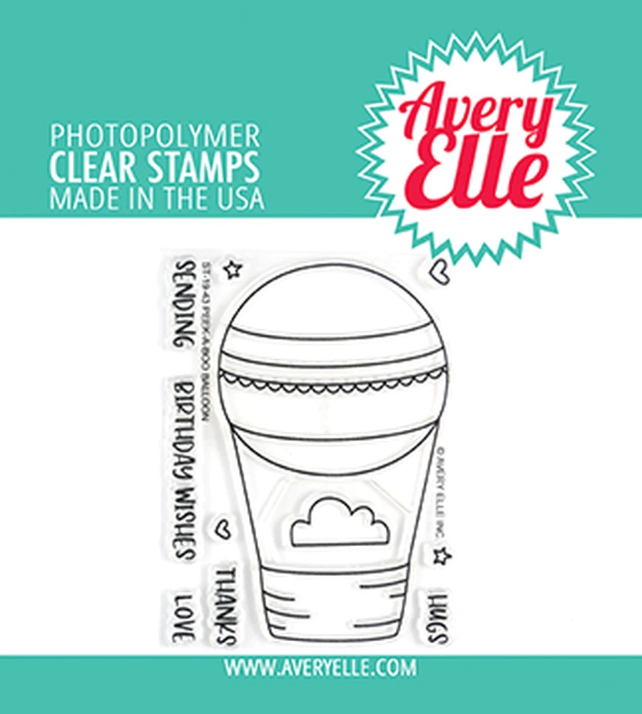 The Peek-A-Boo Balloon stamp set can be a new addition to your Peek-A-Boo collection! Add any of the pals or pets from Avery Elle's Peek-A-Boo sets to create a fun hot air balloon scene. This set can be used for any greeting or occasion. 11 total stamps. Hot air balloon stamp measures: 2 3/16" x 3 5/8"; cloud stamp measures: 15/16" x 7/16"; "birthday wishes" sentiment stamp measures: 1 11/16" x 3/16". Our Exclusive clear stamps are proudly made in the USA.