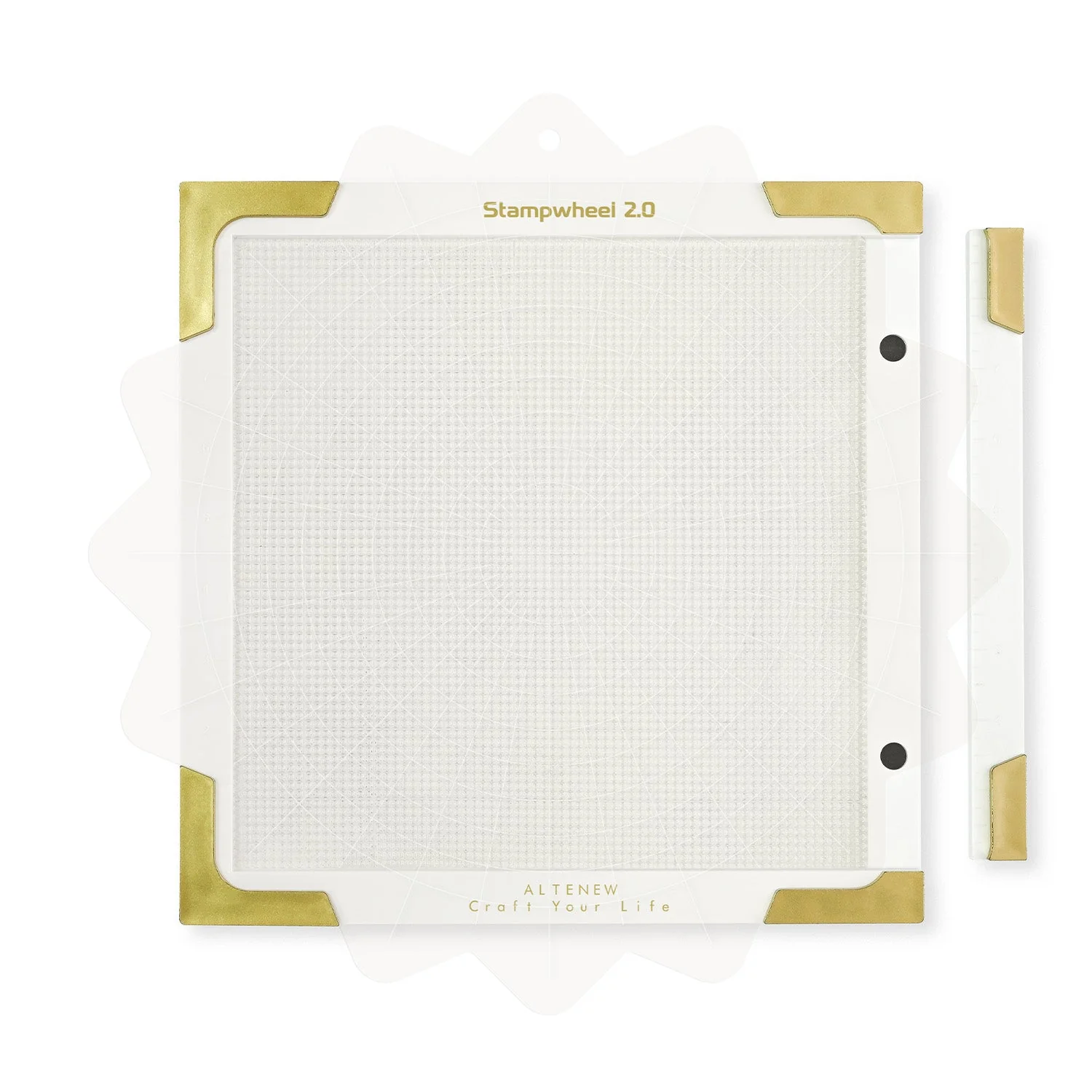 The Stampwheel 2.0 builds on the success of the original Stampwheel with notable upgrades, such as a larger workspace with a detachable side, precision inch scales, and a high-quality photopolymer Sticky Mat. These enhancements offer increased versatility and accuracy, designed to elevate your crafting experience and unlock new creative possibilities. This tool underscores our commitment to innovation and is crafted to support and inspire your creative endeavors. This innovative tool retains the original feature of a rotational clear plate that locks into place at 16 equal intervals. The 'Sticky Mat,' made from high-quality photopolymer, ensures your paper and stencils stay securely in place. Additionally, the right side of the Stampwheel 2.0 frame is detachable to accommodate larger stamps, stencils, or paper. Both sides of the frame include an inch scale for easier alignment. Whether you're stamping a single image, layering stamps, creating wreaths, mirror stamping, designing unique patterns, or using stencils, the Stampwheel 2.0 will be a great crafting companion. Create larger wreaths, layer larger stamps, mirror stamps, use stencils, & more. With every flip, you can enjoy consistent results with minimal effort and maximum creativity! What's included in the box? Stampwheel 2.0 Flip Plate 13" x 13" Stampwheel 2.0 - Sticky Mat: Grid 9" x 9" Stampwheel 2.0 Stage: 101/2" x 101/2" x 1/2"