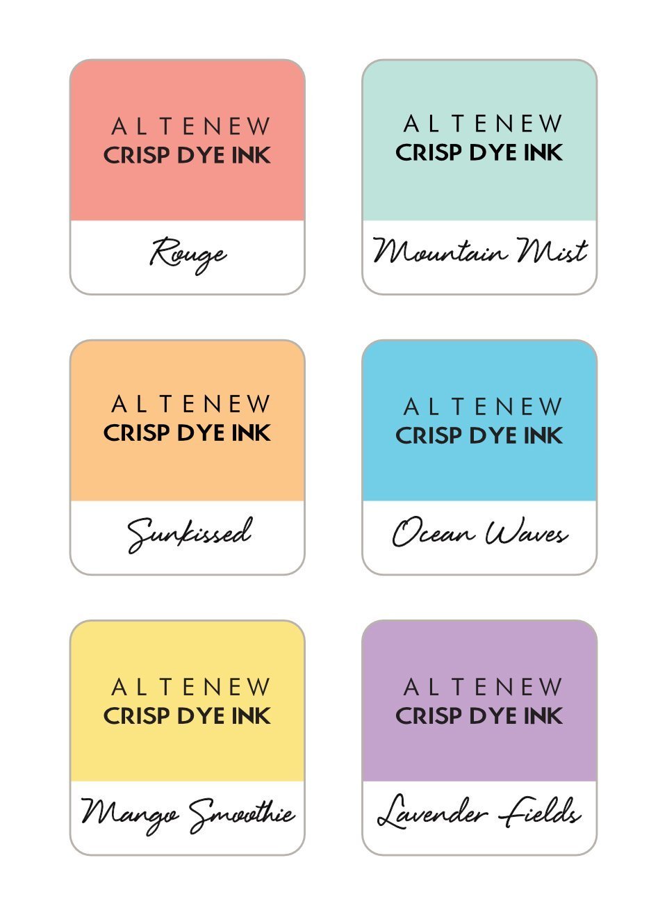This Soft Pastel 6 Mini Cube Set has essential colors you need to create soft and lovely stamp impressions! Colors Included: Rouge, Sunkissed, Mango Smoothie, Mountain Mist, Ocean Waves, Lavender Fields. Our fast-drying dye inks will give you uniform coverage and a crisp impression every single time. They are excellent for water-based techniques and perfectly complement our clear photopolymer stamps. These mini cubes are perfect for smaller images or trying out any of our colors! 6 cubes of Altenew dye inks. Water-based. Smooth coverage. Vibrant Impression.