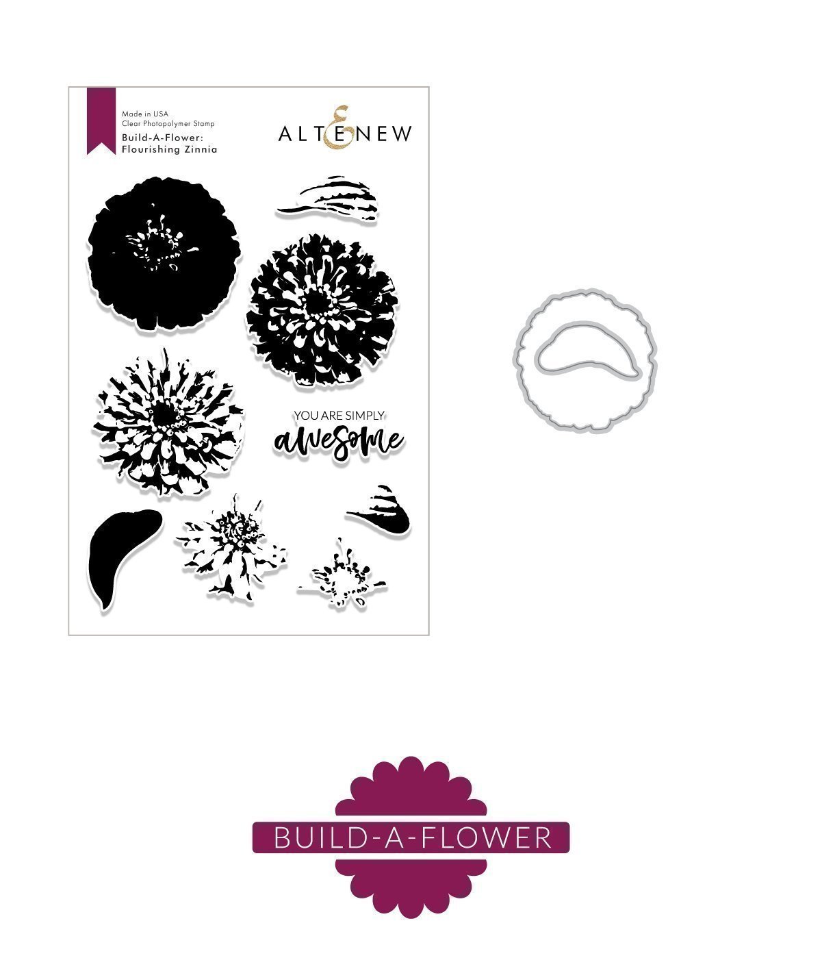 Build-A-Flower: Flourishing Zinnia includes 1 6x8 stamp set (9 stamp images) and 1 coordinating die set (2 dies).This stamp set features a flourishing zinnia elegans flower with five layering pieces to achieve a beautiful detailed result. Zinnias come in a variety of colors so you can pick your favorite Altenew inks from pinks, reds, and purples, to greens, yellows, and oranges. In addition to the main flower you can use the layered leaf image to complement your design and an encouraging sentiment to finish your card.This special product is only sold as a set, not individually.