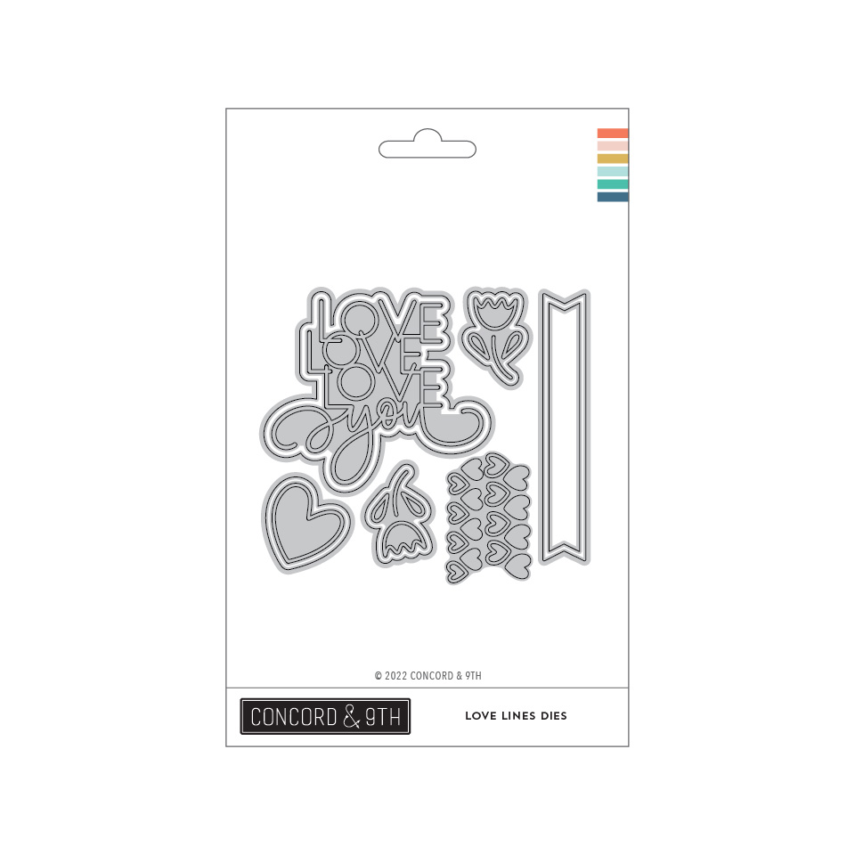 The Love Lines Dies provide sweet and playful embellishments for any project! The banner die is sized to fit the greetings in the coordinating Love Lines Turnabout Stamp Set. This die set contains 11 pieces.