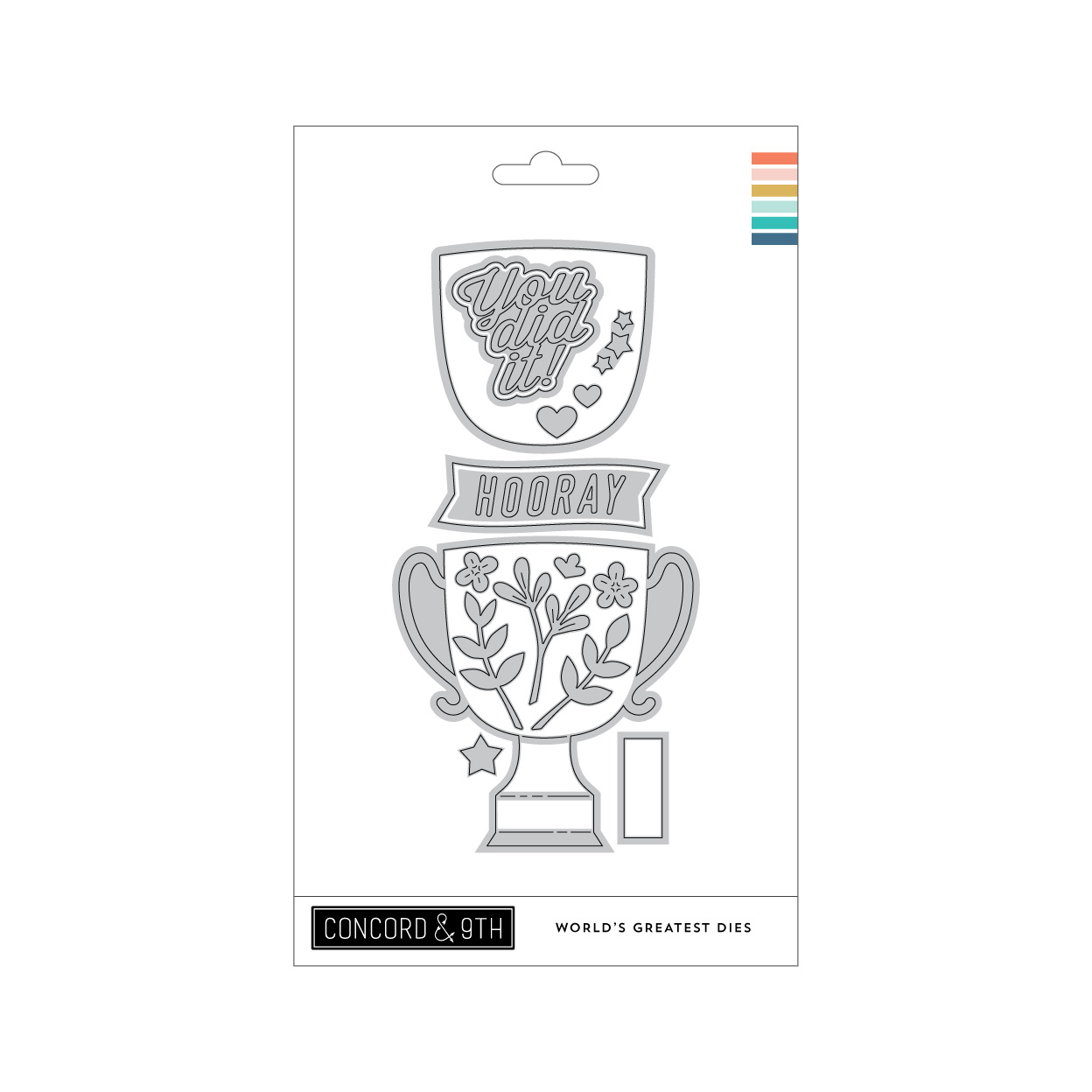 Cut out adorable little trophies to use on cards and other projects with the World's Greatest Dies! There are hearts, stars, flowers and more to help you celebrate to the fullest. We've also included separate cup and base shaped dies that can be layered on top of the full cup to give it a two-toned look. You can even add a slight curl to the cup piece to give dimension to the trophy! Coordinates with the World's Greatest Stamp Set. This die set contains 17 pieces.