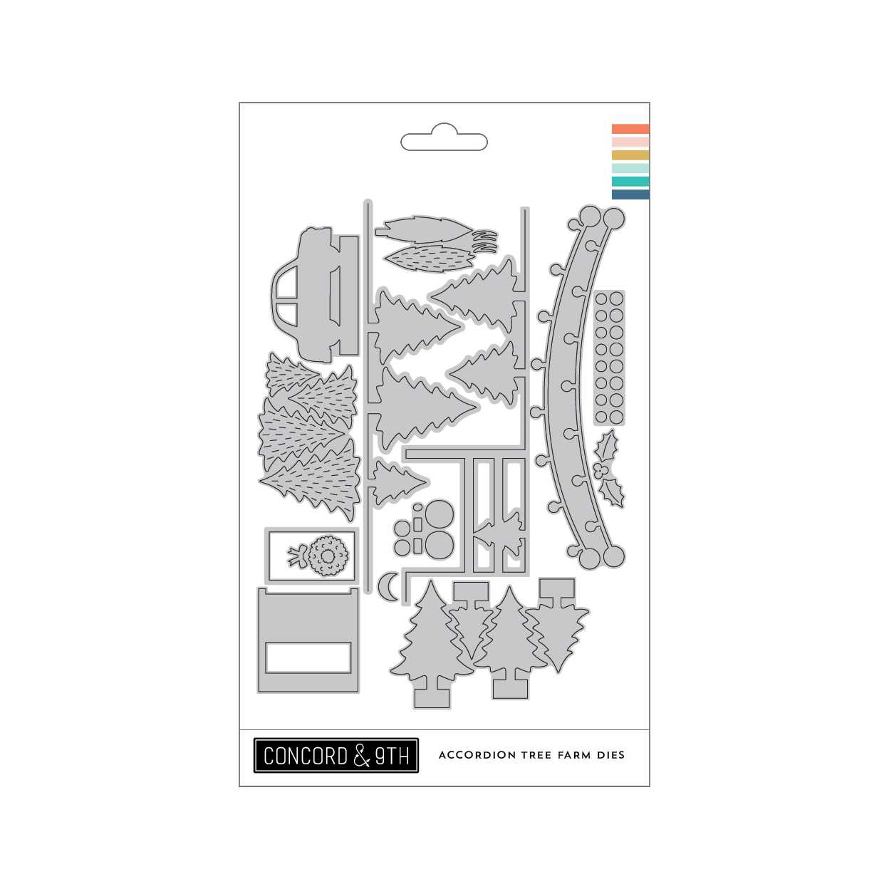 Crank up the holiday tunes and let's hit the road, it's time to pick out a tree! The Accordion Tree Farm Dies contain everything you need to create little Christmas tree lots including rows of pine trees, charming wreaths, signs, and even a little car to drive it all home. This set is perfect for making dimensional holiday scenes when you use it alongside the Accordion Card Base Dies or even the Pop-Out Stacks Base Dies. Of course you can always keep it classic with a more traditional card base because the Accordion Tree Farm does it all! Coordinates with the Accordion Tree Farm Stamp Set. 14 pieces.