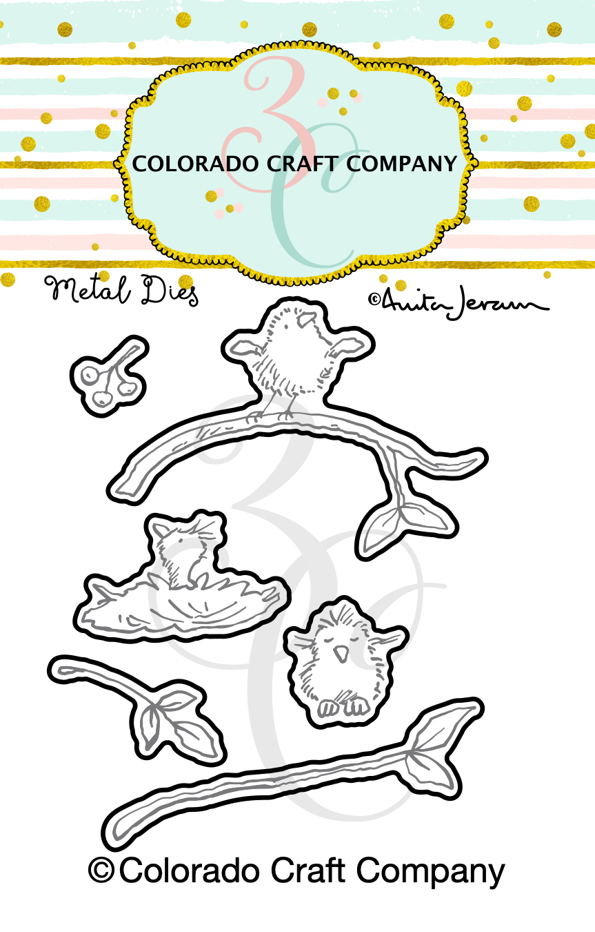 Give wings to your dreams with our Tiny Birds Berries Mini Dies featuring the illustrations of Anita Jeram for Colorado Craft Company! The 2.5 x 4.5-inch package includes 6 thin metal dies that are compatible with most die cutting machines and coordinate with our Tiny Birds Berries Mini stamp set (AJ820 - sold separately). The dies include a tiny bird perched on a branch, two single branches, berries, a tiny bird, and a nest with a baby bird.