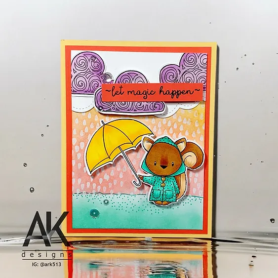 Let the rain wash your cares away with the Never Far Behind Clear Photopolymer Stamp Set featuring the illustrations of Kris Lauren for Colorado Craft Company. The set includes clear photopolymer stamps with two squirrels, an umbrella, a cloud, rain droplets, raincoat pockets, buttons, and rain boots. This package includes the Never Far Behind stamp set measuring 4 x 6 inches. It includes eleven stamps: eight images and three sentiments. The stamps can be used with the coordinating Never Far Behind die set sold separately (KL877-D). Sentiments included in the set: "Don't fear the storm, for the rainbow's never far behind. -Jamie Worthington" "Life is short..." "...dance in the rain!". Appoximate Measurements: Largest: 1.4" x 2", Smallest: 0.1" x 0.3"