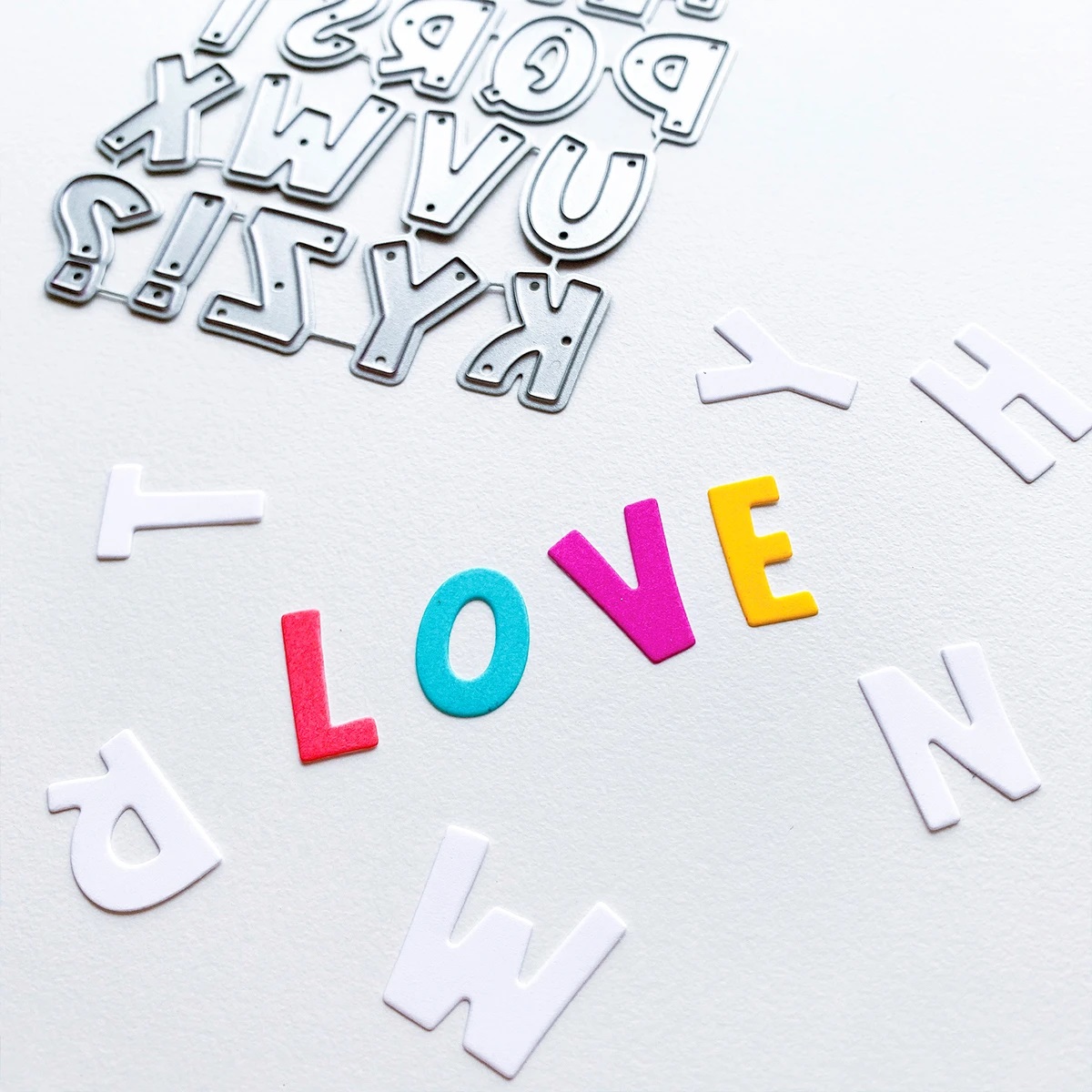 Spell out the exact greeting you like with the Block Alphabet Dies. These little approx. 3/4" tall letters have a casual and slightly whimsical font and will make a cute accent to your next card. Personalize your card by adding a loved one's name or add some ink colors direct to paper and create your own feature word. This set of dies is great for scrapbook projects or Canvo Bullet Journal pages too! Illustrated by Leslie Dunegan. Stainless steel and are compatible with all standard die cutting machines.
