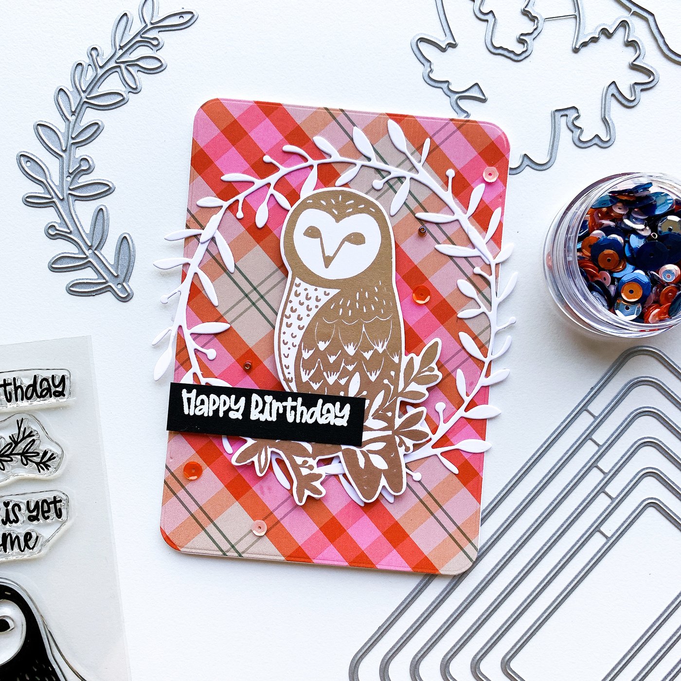 Use the four (4) Wiser Dies to cut out the two (2) owls, the crown and the pinecone from the Wiser Stamp Set. Illustrated by Olivia Gibbs. Stainless steel and are compatible with all standard die cutting machines.