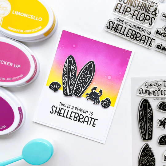 Surf's up in your crafty space! Bring some fun in the summer sun to your next card with the Surf City Stamp Set. Pair your surf boards and shells up with one of the happy, hand-lettered sentiments in the Beach Greetings Sentiments Stamp Set. Don't forget the Surf City Dies for lots of groovy surfing layers! Designed by Olivia Gibbs