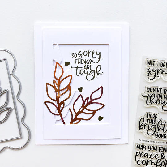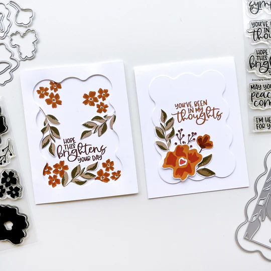 The Vine & Frame Die will create a gorgeous layer or decorative addition, too. Outer frame measures: 4 1/2" x 3 1/4". llustrated by Traci Reed