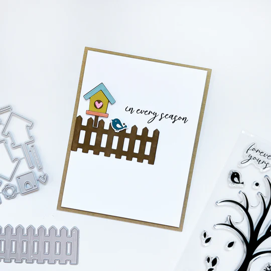 This gorgeous White Picket Fence Die helps complete the scene for so many of your cards. Use it with the In Every Season Stamp Set and Home Tweet Home Dies for cards for every season. Illustrated by Becca Bonneville