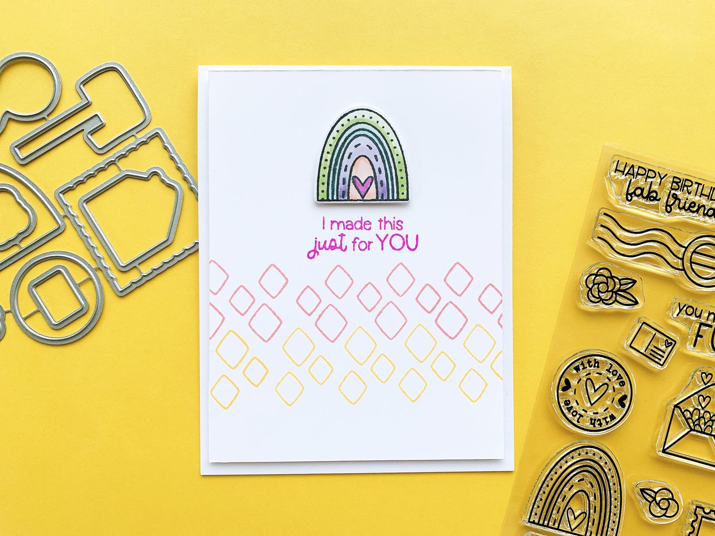 Get ready to send cards for all occasions with the Put a Stamp on It Stamp Set. Use the mailbox, letters, rainbow, flowers, postage and postmarks with the sentiments Happy Birthday fab fried, you make life fun, and I made this just for you to send cards to everyone you know! Don't forget the Put a Stamp on It Dies to enhance all your card creations. Designed by Becca Bonneville. Catherine Pooler clear stamp sets are made out of high quality photopolymer. They cling easily to our acrylic grid stamping blocks.