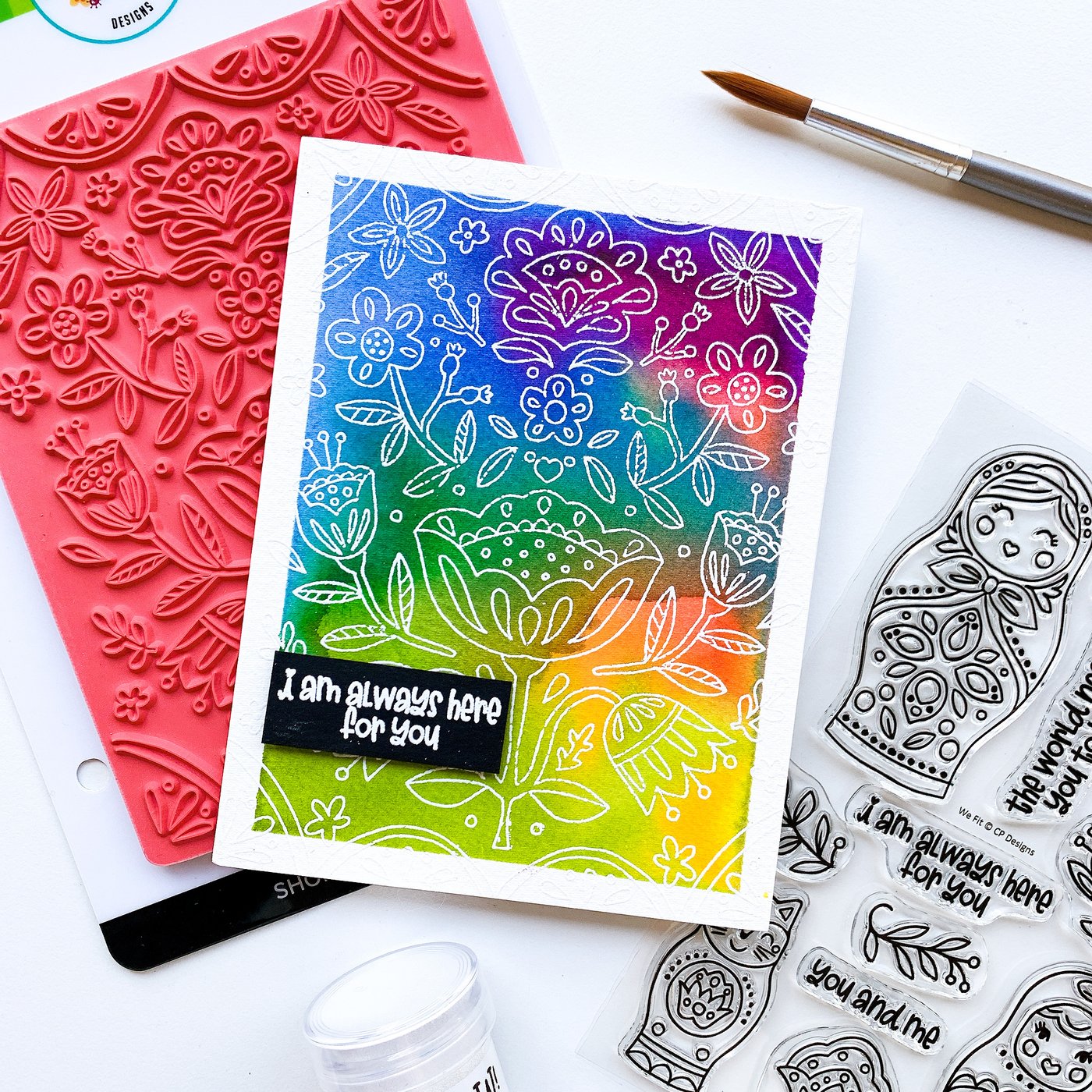 Folk art nesting dolls make up the stamps of the We Fit Stamp Set. This line art stamp set has 3 dolls and a cat doll that would all stamp along side one another from large to small! This set inspired by the art of Eastern Europe includes sweet sentiments like "the world needs you to be you" and "i am always here for you". Remind your friends and loved ones they "just fit" by sending cards made with the We Fit Stamps and coordinating We Fit Dies. Included Sentiments: the world need you to be you, I am always here for you, you and me, we just fit. Designed by Olivia Gibb. Catherine Pooler clear stamp sets are made out of high quality photopolymer. They cling easily to our acrylic grid stamping blocks.