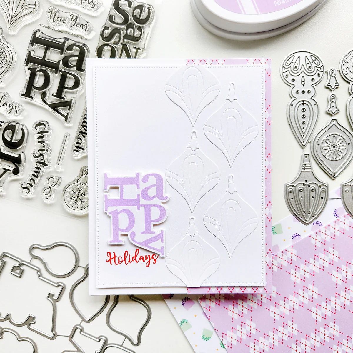 Send a joyful jumble of "merry" and "happy" this season with the Holiday Stacks Sentiment Set. This set features bold, stacked main words paired with secondary scripted sentiments that can nest alongside or beneath the stamped stack, perfect for phrases like "Happy Hanukkah" or "Season's Greetings." To complete your cards and scrapbook pages, we've also included charming line-art retro ornament stamps. For an extra touch of whimsy, try pairing these sentiments with images from the Santa's Crew Stamp and Die Set for playful, festive cards that are full of holiday cheer. For even more options, add the coordinating Holiday Stacks Dies. Sentiments include: Seasons, Merry, Happy, Christmas, New Year, Holidays, Christmas, Hanukkah, Greetings. Designed by Erika Post & Allison Pennington. Catherine Pooler clear stamp sets are made out of high quality photopolymer. They cling easily to our acrylic grid stamping blocks.