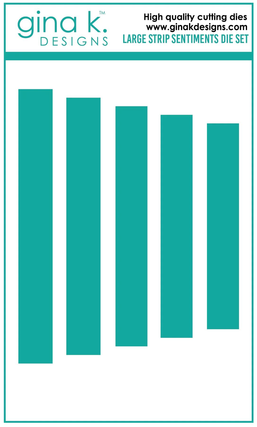 Gina K Designs wafer thin metal-etched dies are the highest quality available for your paper crafting projects. Our dies are compatible with most die-cutting machines. Follow the manufacturer's instructions for your specific machine for cutting wafer-thin dies. Dies are already cut apart for easy use. Gina K Designs dies are lead-free and non-toxic. Made in China. Measurements in inches: 0.5 X 4, 0.5 X 3.5, 0.5 X 3.37, 0.5 X 3.13, 0.5 X 3