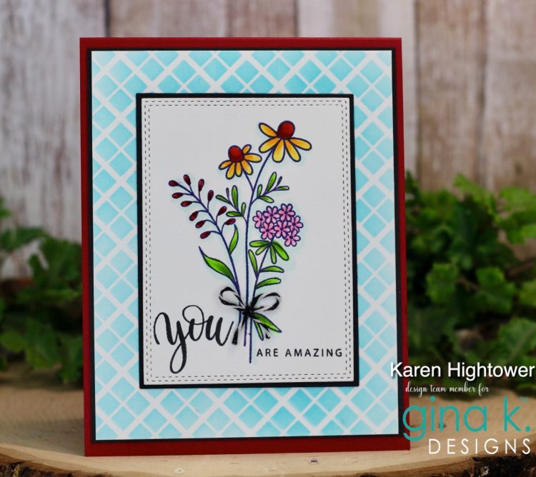 Pretty Posy is a stamp set by Gina K Designs. This set is made of premium clear photopolymer and measures 4" X 4". Made in the USA