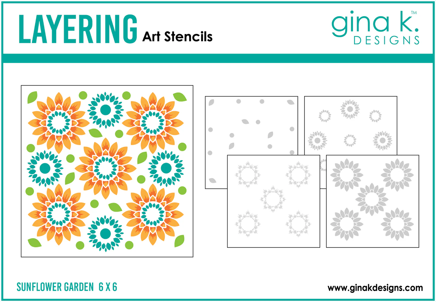 Gina K. Designs Art Screens can be used with ink, sprays, pastes, and gels to create beautiful backgrounds and images. Layer stencils together for more options. Wash with soap and warm water. Pat dry. 5.875 X 5.875