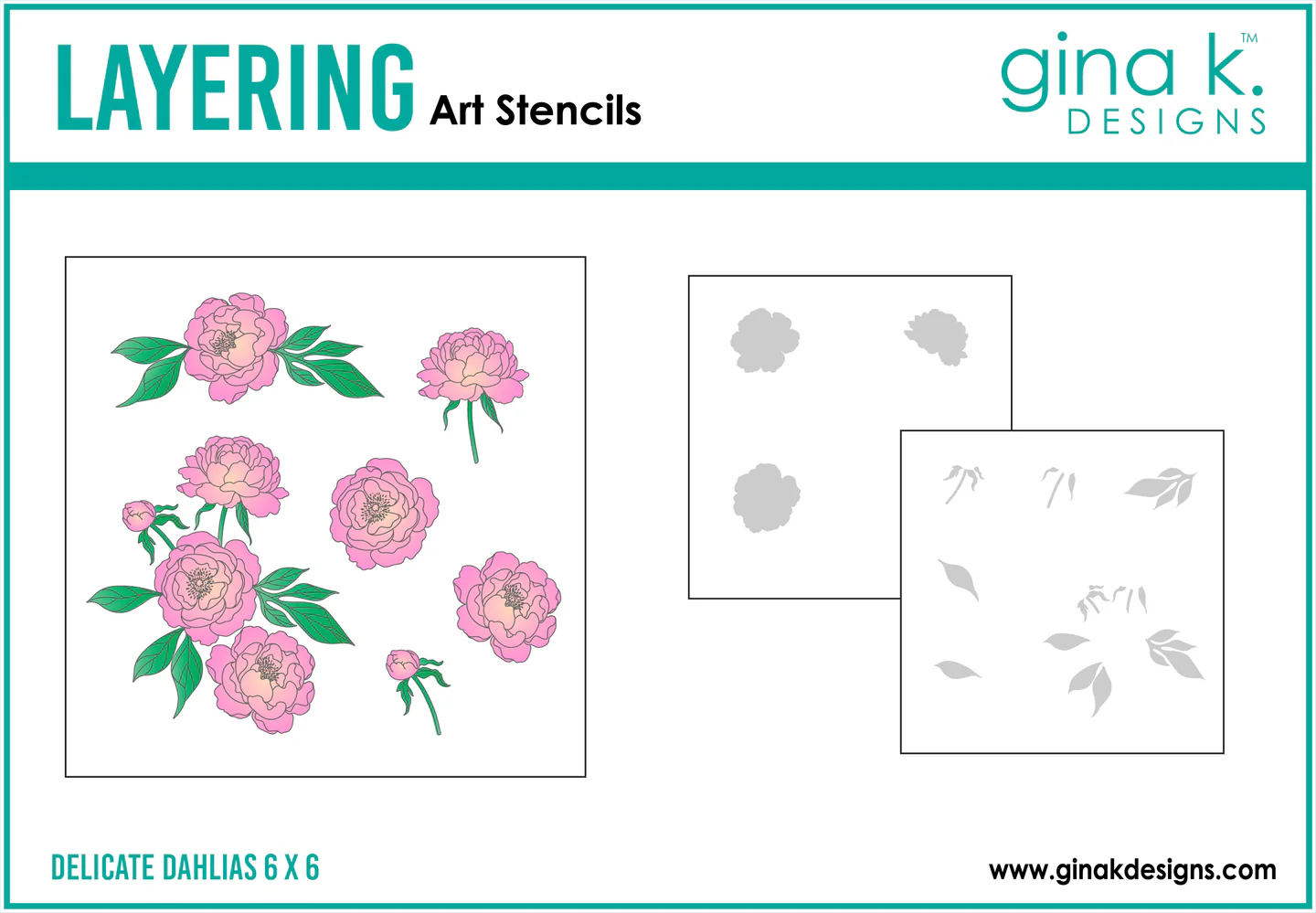 Gina K. Designs Art Screens can be used with ink, sprays, pastes, and gels to create beautiful backgrounds and images. Layer stencils together for more options. Wash with soap and warm water. Pat dry. 5.875 X 5.875