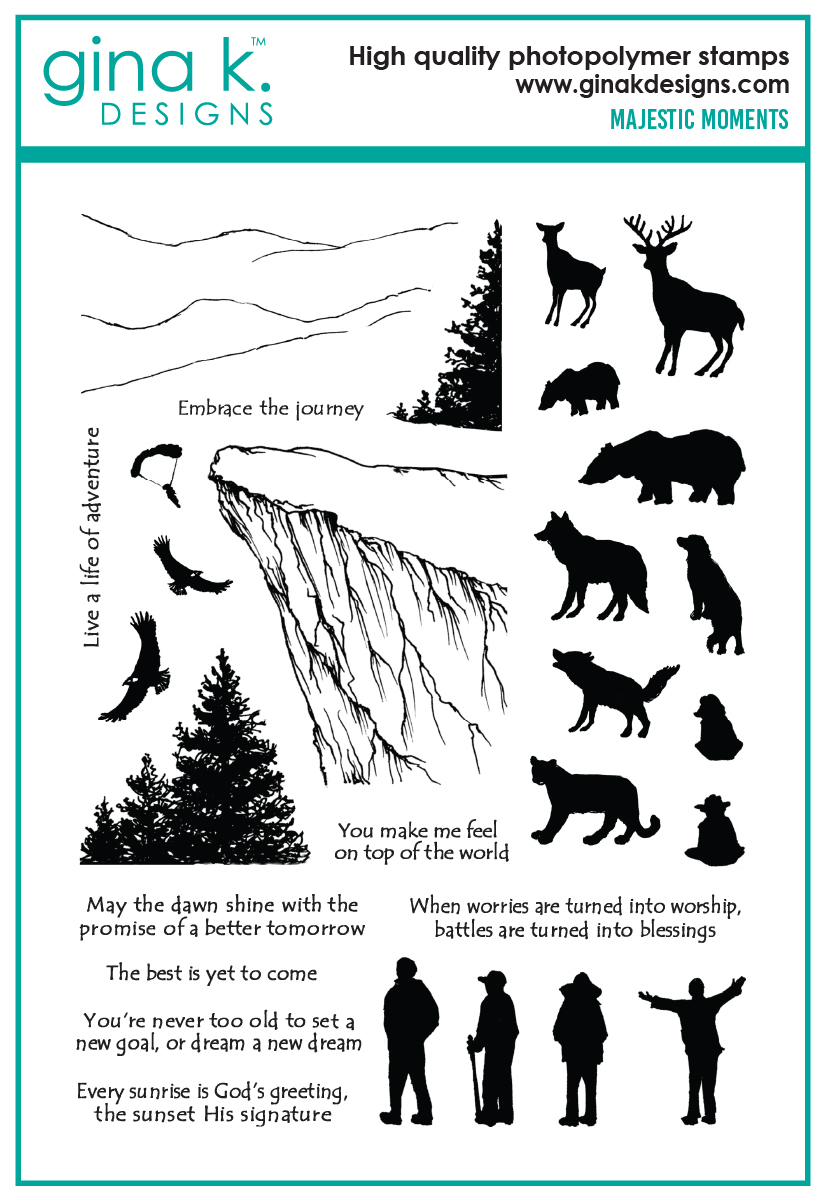 Majestic Moments is a stamp set by Melanie Munchinger. This set is made of premium clear photopolymer and measures 6" X 8". Made in the USA. Available as a Stamp Set only or a Stamp and Die Bundle