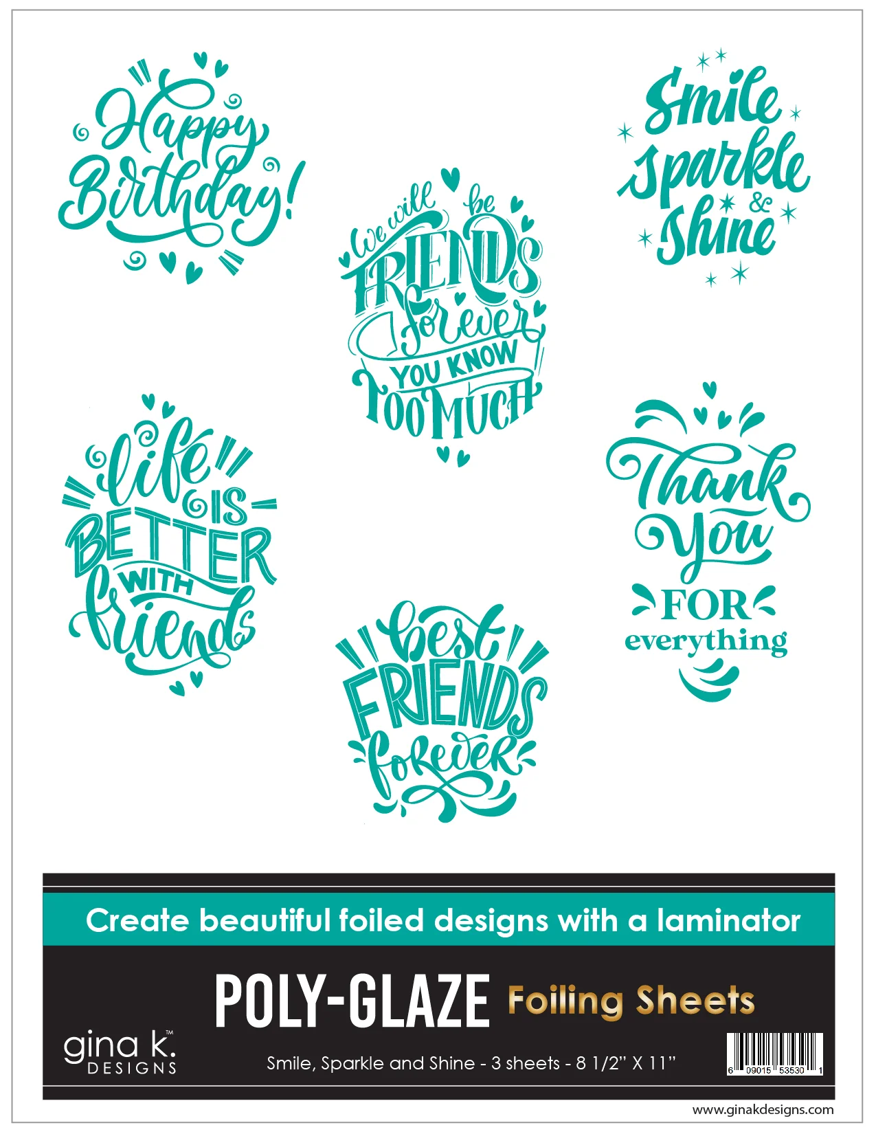 Quickly and easily add shine to any project with Foil-Mates, These foilable elements are printed with Poly-Glaze to be used with the Gina K Designs Fuse Foiling System or other hot laminator products. 3 sheets