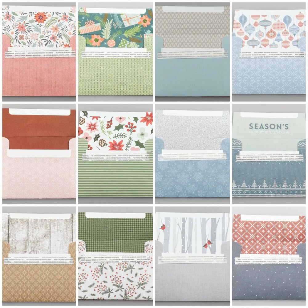 12 pk of A2 Envelopes size 4 3/8" x 5 3/4". 80# envelopes, printed inside and out. Peel-and-seal closure on the envelope. Coordinating Vintage Holiday paper pad available, sold separately. Made in the USA