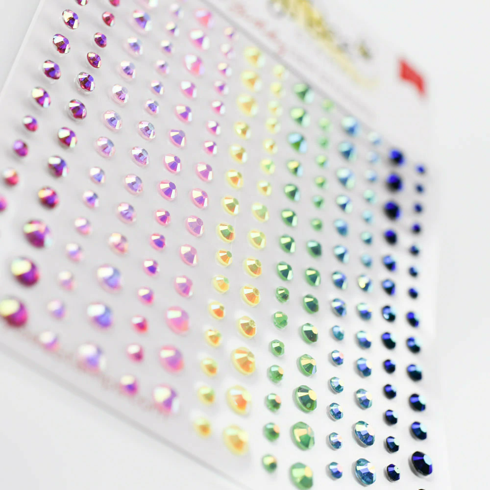 The perfect touch of bling! These lovely adhesive gems are the perfect accent for your next handmade card or paper craft project! Use them anywhere you want to add a touch of sparkle and shine. Each pack contains 210 dazzling self-adhesive crystal gem stickers in three sizes: 3mm, 4mm, and 5mm!