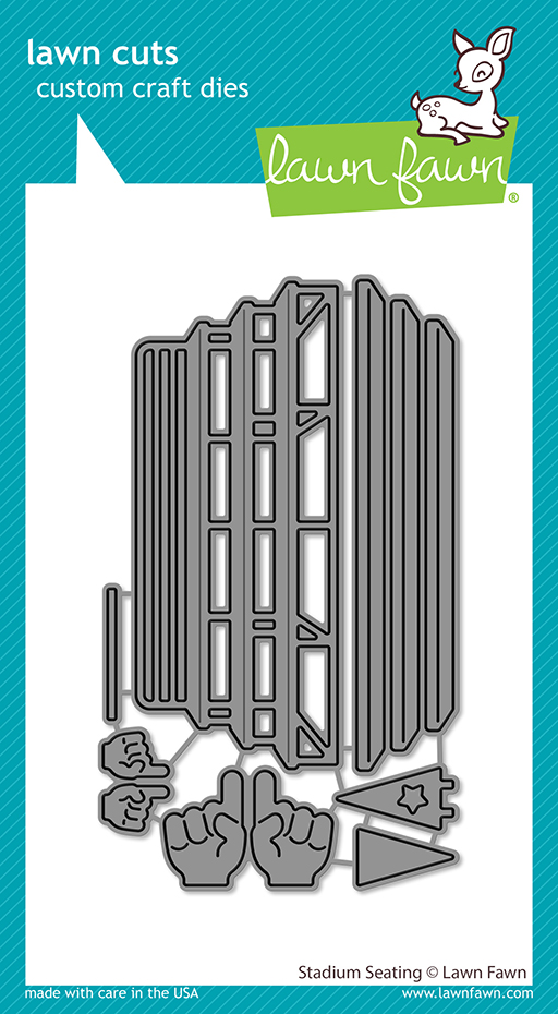 This die set creates bleachers to add to sports themed cards and crafts! The set includes pennants and #1 fingers to elevate team spirit! Coordinating set ideas: Pair this die set with Tiny Sports Friends for sports-themed cards and crafts. Add Giant You Are #1 or Giant Go Team to root on your favorite player or team! approximate sizes: assembled seating: 1 1/2" x 3 3/4"large foam hand: 3/4" x 7/8"small foam hand: 1/2" x 3/8" Lawn Cuts custom craft dies are high-quality steel, made in the USA, and are compatible with most die cutting machines!