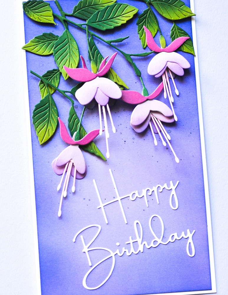 2.2 x 1.4 inches Happy, 3.1 x 1.5 inches Birthday. 5.6 x 3.6 centimeters Happy, 7.9 x 3.8 centimeters Birthday. 1 die included, cuts out 2 designs.
