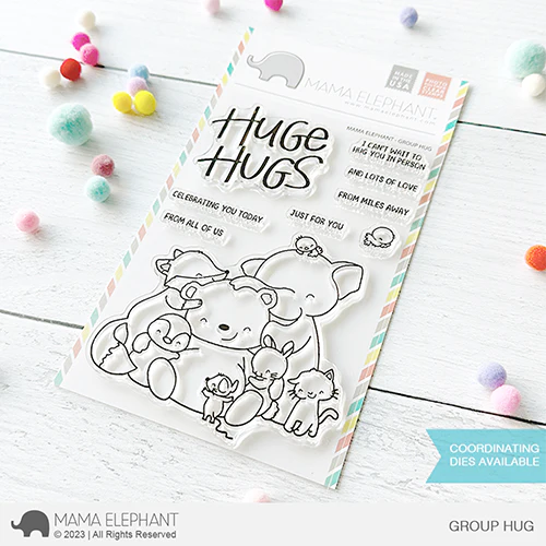 4x6 Photopolymer Stamp Set Includes: 2 Image Stamps, 7 Sentiment Stamps. Approximate measurements: Huge Hugs 2" x 1.7", Group 3.6" x 3.4", From all of us... 1" x .1". Coordinating Creative Cuts (Sold Separately): Group Hug Creative Cuts