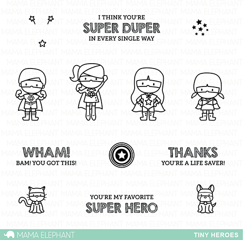 Tiny Heroes is a super hero themed set which is great for those encouragement, thank you and those I think you are super kinda cards and projects! 4x6 Photopolymer Stamp Set: Contains 14 Stamps: 4 sentiments and 10 images. Approximate measurements: super boy 1-1/2" x 7/8", super girl 1-5/8" x 1-1/8", Super Duper 2-1/4" x 3/4"