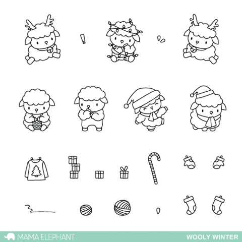 4x6 Photopolymer Stamp Set: Contains 22 Image Stamps. Approximate measurements: Knitting Sheep 1" x 1-1/4",Reindeer Sheep 1" x 1-1/4" ,Light Up Sheep 1" x 1-1/4"