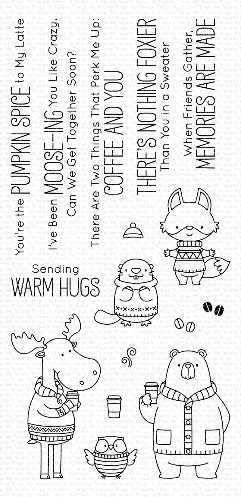 Woodland creatures donning comfy gear ranging from pullovers and cardigans to a pom-bedecked beanie conjure cozy feelings, don't they? This assortment features a fox, beaver, moose, owl, and bear ready to chat the night away in their best handknit finery. Warm drinks, coffee-themed accessory images, and an abundance of heartwarming sentiments round out this cozy collection. Mix and match with the sentiments included in Sweater Weather on Safari and host a truly wild party by mingling our woodland friends with the savannah-inhabiting creatures featured in it. 4" x 8" clear stamp set