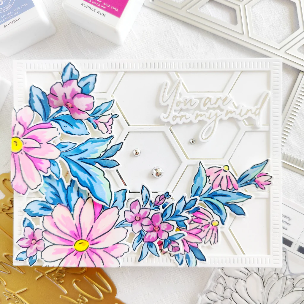 6 piece layering stencil set made to coordinate with the Painted Daisies stamp set and Painted Daisies die set. There is a separate stencil for each layer, with guidelines on each stencil for perfect alignment when using alone. When using the stencils with the stamped images you will forego the alignment guides, and instead align each layer to the stamped images. Use them without the stamped image for a soft, no-line coloring feel. Use the coordinating stamp to add more detail to the image by stamping with detail black, or heat embossing in your favorite powder. Stencil design measures approximately 4.25" x 5.5"