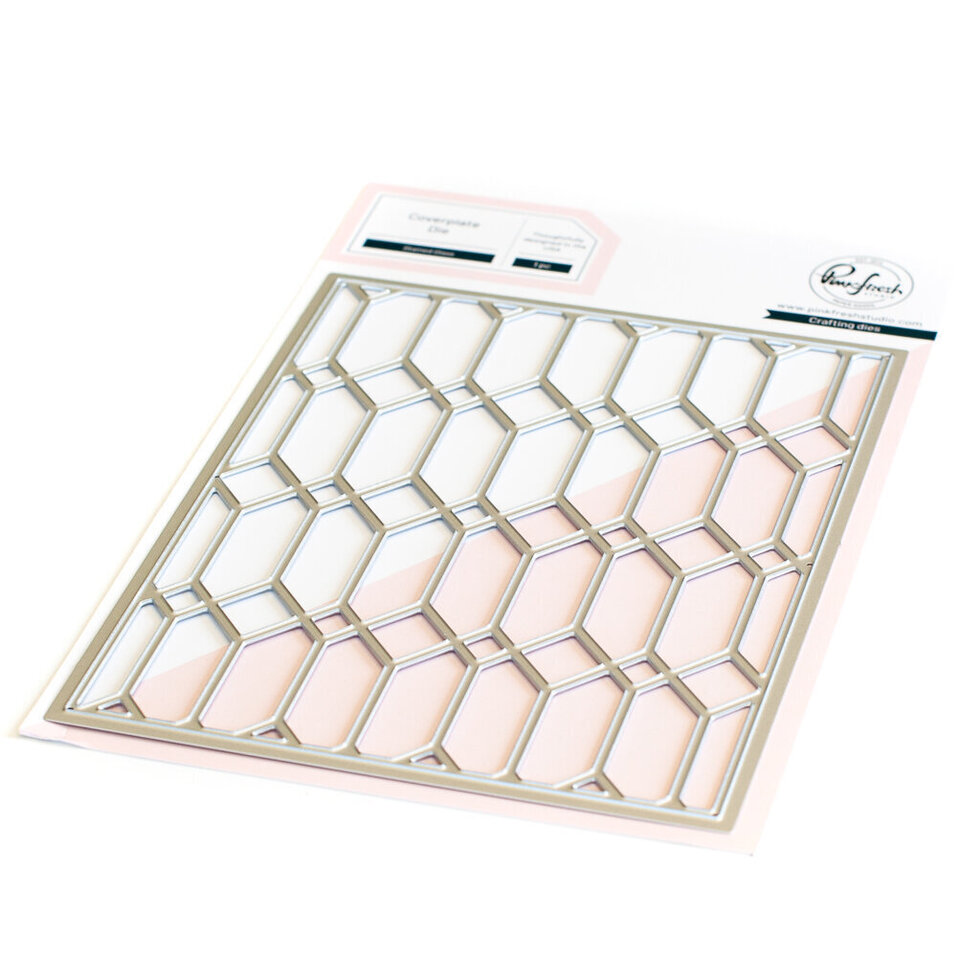 1 piece coverplate die that compliments the Stained Glass layering stencil set and Stained Glass hot foil plate. This die adds a geometric background design to your card and is sized for an A2 card. Due to its size and intricate nature, you may need to add a metal shim to your diecutting sandwich. Approximate Measurements: 4.25' x 5.5"