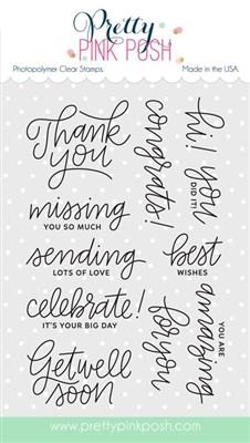 Create whimsical and fun creations with the Everyday Greetings stamp set. This 4" x 6" set includes 11 stamps. Made in the USA.