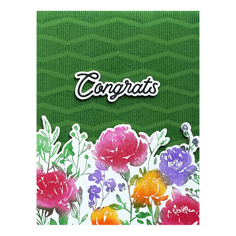 Watercolor Flowers Stamp and Die Set by Simon Hurley combines HUR83627 Ranger Watercolor Flowers Clear Stamp Set and S6-216 Watercolor Flower Etched Dies for a perfect pairing to cut out multiple blossoms and leaves to create a perfect floral arrangement! Stamp a lovely garden background, then cut it out with the coordinating die, then add additional flowers for a gorgeous dimensional garden. Many options for your card creations! Spellbinders Paper Arts and Ranger Ink are excited to be in this wonderful collaboration of bringing Simon Hurley's signature stamps and coordinating dies to you! Approximate Size for S6-216 Watercolor Flowers Etched Die Set: Thank You Outline: 1.523 x 1.52" 3.9 x 3.9 cm, Hello Outline: 1.44 x 0.83" 3.7 x 2.1 cm, Congrats Outline: 2.18 x 0.80" 5.5 x 2.0 cm, Large Flower Outline: 1.93 x 1.58" 4.9 x 4.0 cm, Large Leaf Stem Outline: 1.56 x 2.34" 4.0 x 6.0 cm, Leaf 1 Outline: 0.48 x 1.24" 1.2 x 3.2 cm, Leaf 2 Outline: 0.46 x 1.12" 1.2 x 2.8 cm, Leaf 3 Outline: 0.38 x 0.89" 1.0 x 2.3 cm, Leaf 4 Outline: 0.50 x 0.98" 1.3 x 2.5 cm, Leaf 5 Outline: 0.47 x 0.94" 1.2 x 2.4 cm, 3 Leaf Stem Outline: 1.09 x 1.92" 2.8 x 4.9 cm, Medium Flower Outline: 1.91 x 1.73Z" 4.9 x 4.4 cm, Large Stem with Blooms Outine: 1.59 x 3.15" 4.0 x 8.0 cm, Small Flower on Stem Outline: 1.63 x 3.06" 4.2 x 7.8 cm, Floral Panel: 4.31 x 1.23" 11.0 x 3.1 cm
