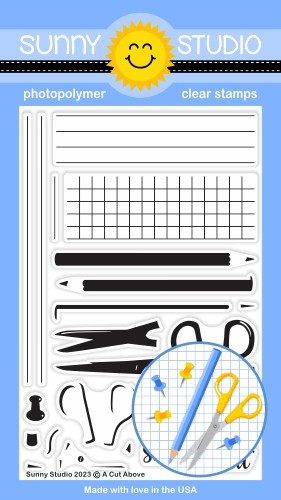 Go a cut above the rest in your crafting using our clear stamps featuring layered scissors, colored pencils, and pushpin images! Or use the grid and lined images to stamp a repeating background. These stamps will cut through the monotony by helping you snip and shade your way to a colorful, punny masterpiece! Check out our coordinating A Cut Above Dies, Color My World Stamps, Notebook Tabs Dies, and Notebook Photo Corners Dies for additional design options. Approximate Stamp Sizes: Scissors- 2-5/8"w x 1-3/8"h, Colored Pencil- 3-1/8"w x 7/32"h, Pushpin- 5/16"w x 5/8"h, Notebook Lines- 4-3/16"w x 3/4"h, Notebook Grid- 4"w x 1"h, Snippy Word- 1-1/16"w x 3/8"h.