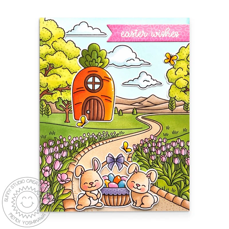 Sunny Studio - Tulip Path Background 6x6 Clear Stamps
