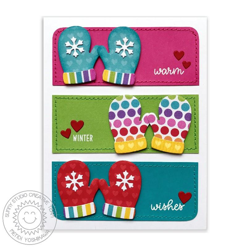 Sunny Snippets are custom craft dies made from high quality steel and are compatible with most die-cutting machines. Our Warm & Cozy dies come with the parts and pieces to create a layered hat, mittens and a hot cocoa mug with marshmallows.