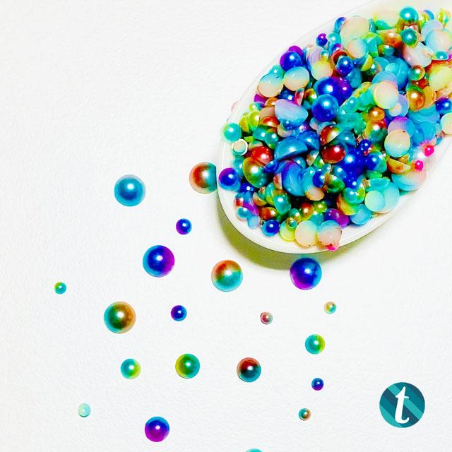 This embellishment selection contains a mix of smooth flat-back ombre rainbow beads in an assortment of sizes. Comes in a plastic storage box. .2 oz of embellishment (approx 1 - 1.5 tsp)