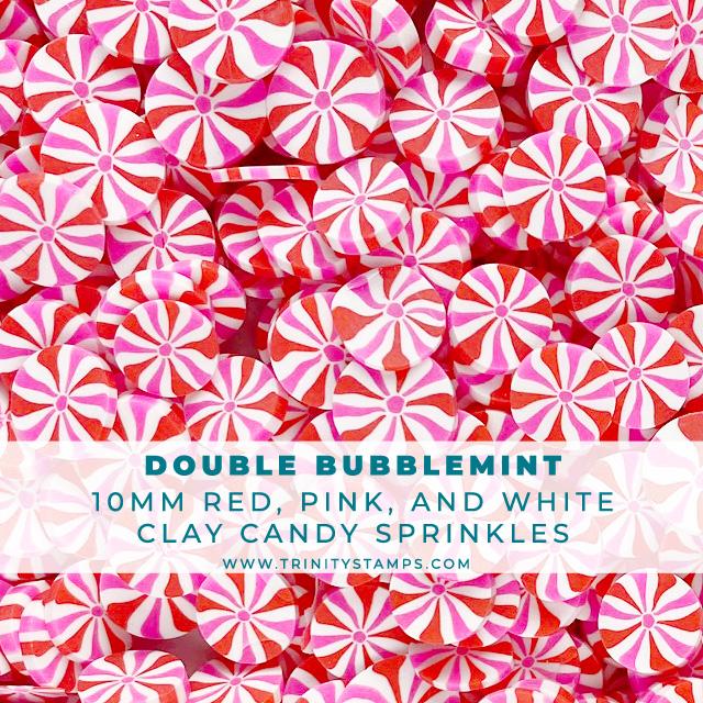Trinity Stamps - Double Bubblemint - 10mm Pink, White, & Red Clay Candy