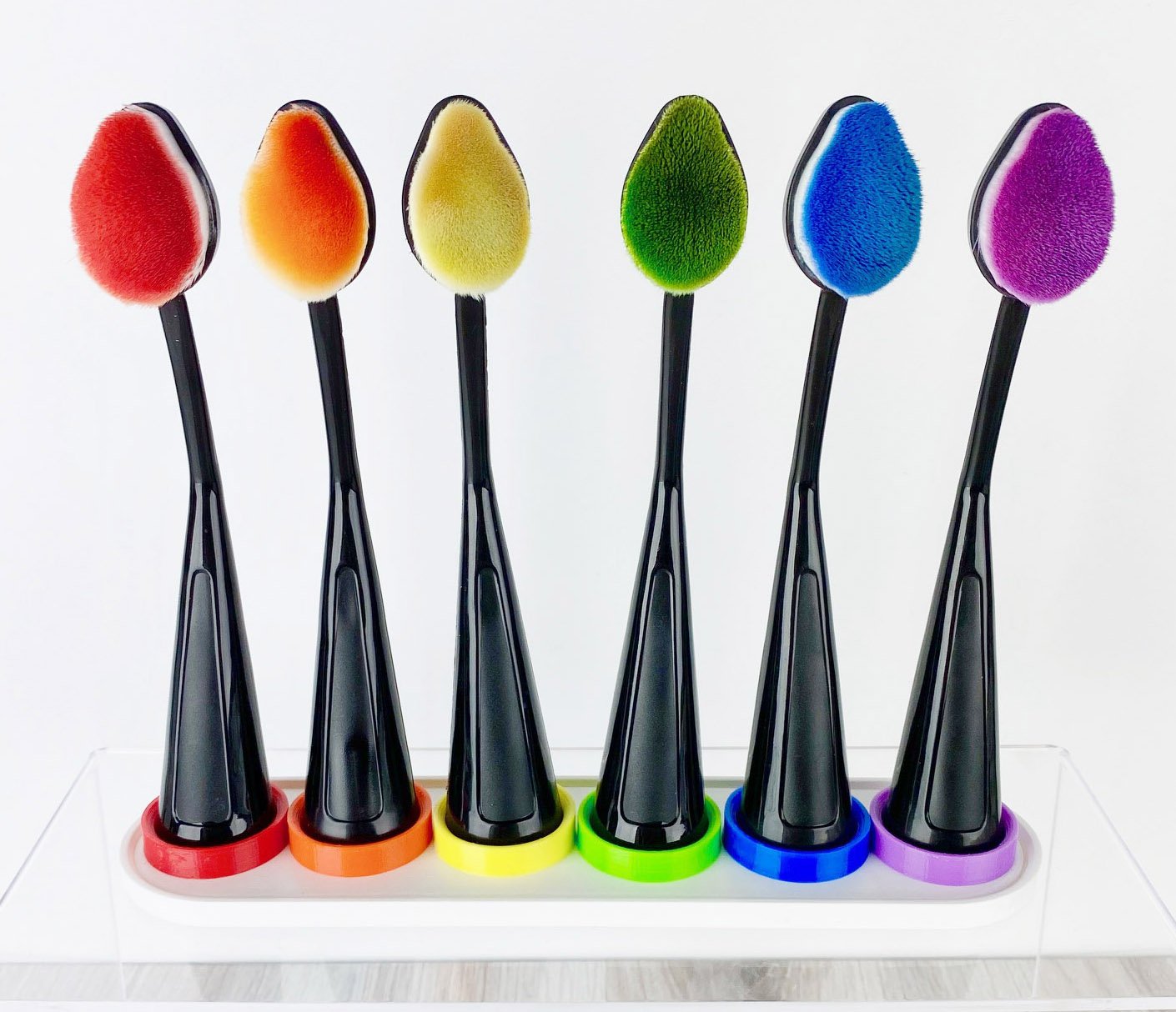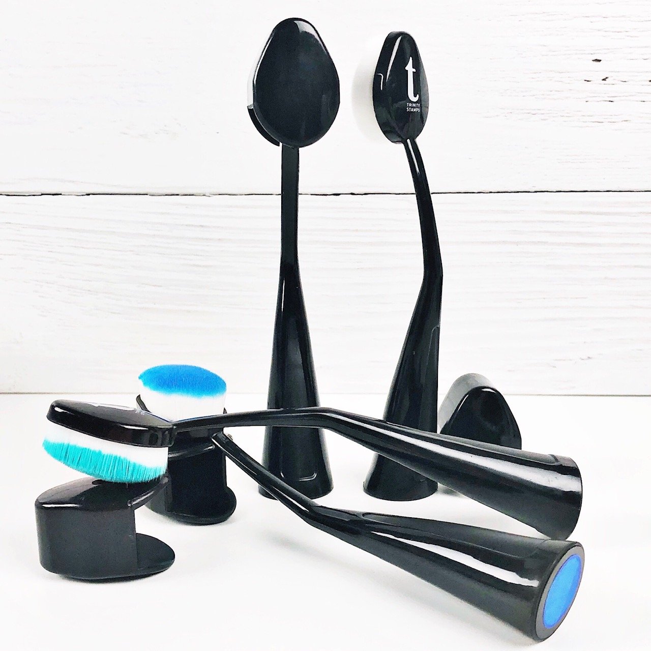 The Trinity Stamps Blending Buddy is finally here. This unique blending brush stands upright so you don't accidentally get ink where you don't want it. The tapered brush head allows you to get into tight spots but still allows for great blending coverage for large areas. When you are not using your Blending Buddy, You have a convenient cap that is perfect for storage or travel! The brush head measures 1 1/4" Long and 3/4 at the widest part.