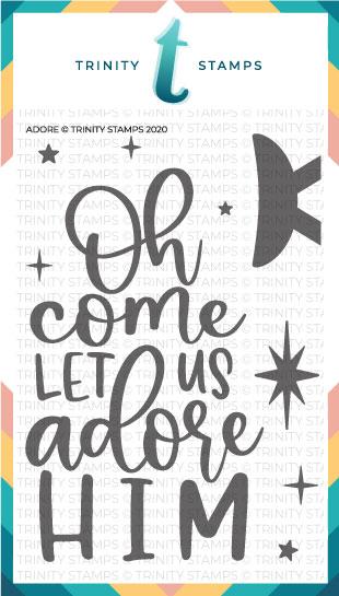 Adore is a 9 piece 4x6 stamp set featuring a beautifully written sentiment. Additional images include a manger and assorted starbursts. There is not a coordinating die for this stamp set.