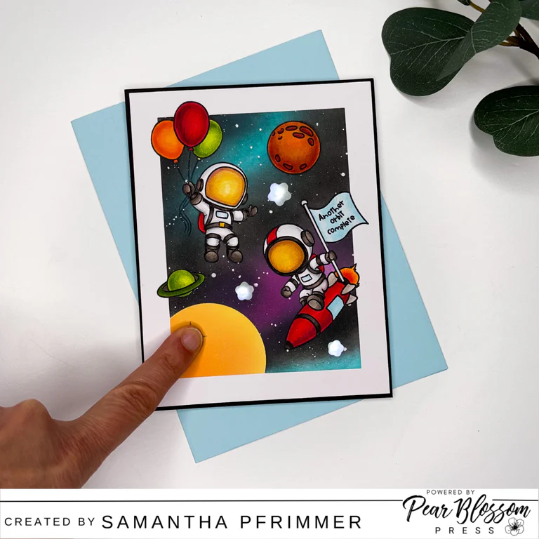 Looking for a stamp set that's out of this world? Look no further! Another orbit stamp set has it all - 14 stamps, 4 astronauts, and even a giant image that stands at 2.65" tall! Get ready to explore the galaxy with these stellar stamps.