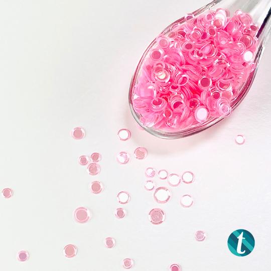 This embellishment mix contains three sizes of semi transparent shiny pink crimped confetti in a plastic storage box. Contains 1.5 tsp of confetti.